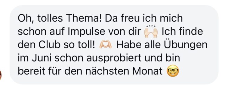Außerdem motiviert dich die Community, die monatlichen Live-Sessions und kleine Impulse – so bleibst du Schritt für Schritt dabei, ohne dich überfordert zu fühlen.