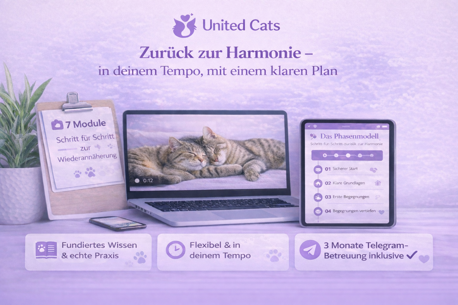 In United Cats bekommst du alles was du brauchst, um deine Katzen Schritt für Schritt wieder zusammenzuführen. Mit einem klaren System, echtem Training und Begleitung die bleibt.